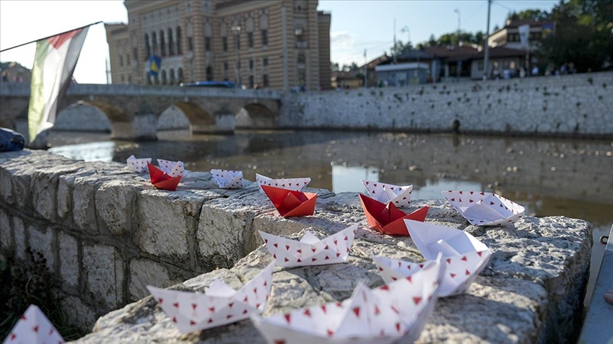 Bosna Hersek’in başkenti Saraybosna’daki Miljacka Nehri’ne, Filistin ile dayanışma ve İsrail’in ablukasını kırmak için 44’ten fazla ülkenin desteğiyle yola çıkan Küresel Sumud Filosu ile dayanışma için kağıttan gemiler bırakıldı.